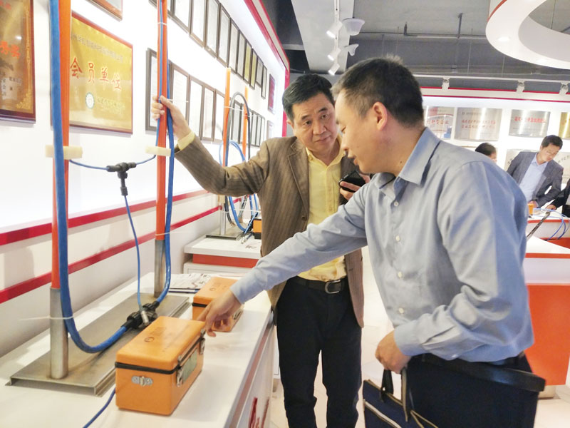 公司領導陪同安徽理工大學專家、教授參觀公司產品展廳、介紹公司產品與研發技術